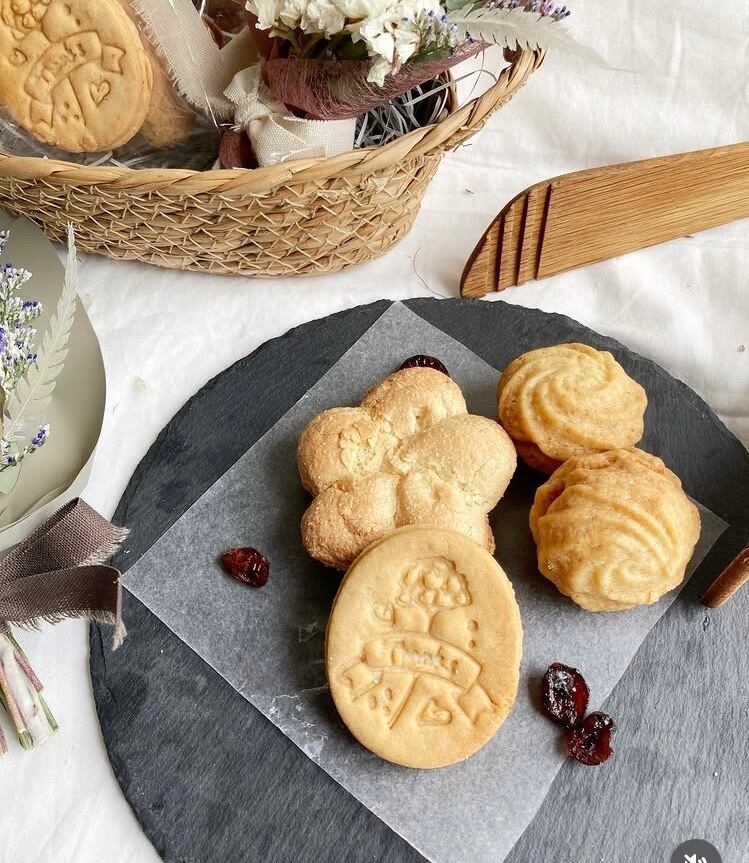 サク、ホロのヴィエノワサブレにとろっとしたキャラメルをサンドしました